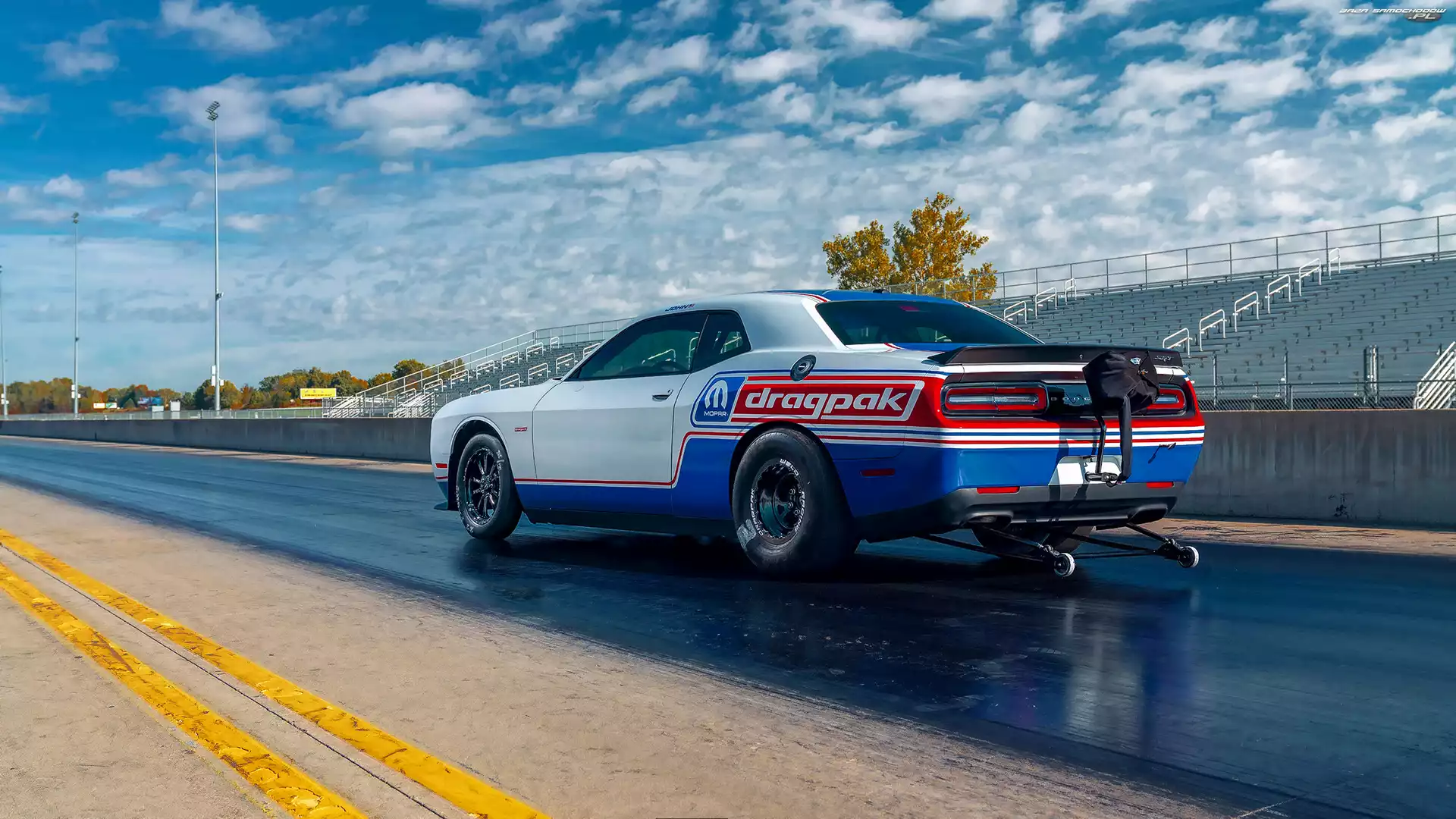 Dodge Challenger Mopar Drag Pak, Biało-niebieski- Zdjęcia samochodów