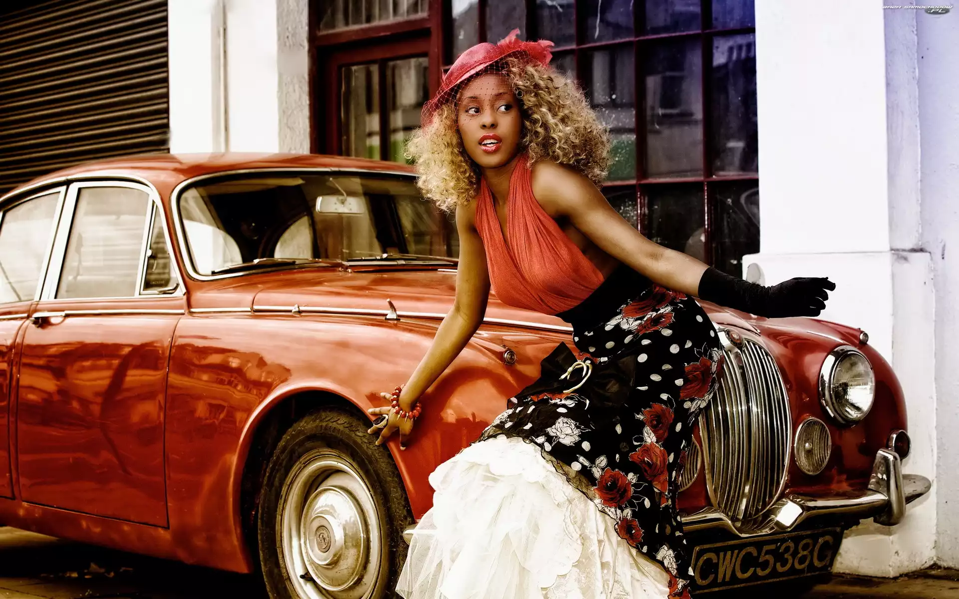 Kobieta, Samochód, Ciemnoskóra, Czerwony- Zdjęcia samochodów